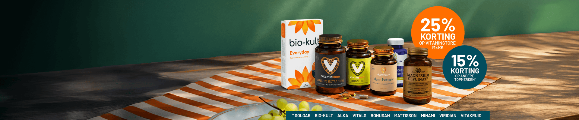 Het kan soms best een uitdaging zijn om genoeg aandacht aan jezelf te geven, de balans kan aardig zoekraken. Terwijl balans in combinatie met voeding, beweging en bescherming, essentieel is om je goed te voelen. En dát is precies waar Vitaminstore al meer dan 25 jaar voor staat: mensen zoals jij helpen naar een lang, gezond en vitaal leven. Of je nu op zoek bent naar ondersteuning van je gezondheid, wat extra veerkracht of je gewoon goed wil blijven voelen, bij ons krijg je altijd écht persoonlijk advies. Geen ‘one size fits all’, maar maatwerk voor jouw vitaliteit. Je goed voelen begint bij goed voor jezelf zorgen, van binnen en buiten. Daarom vind je bij ons producten die zijn ontwikkeld met de beste ingrediënten, zodat jij er elke dag weer tegenaan kunt. Shop in één van onze 18 winkels en online.